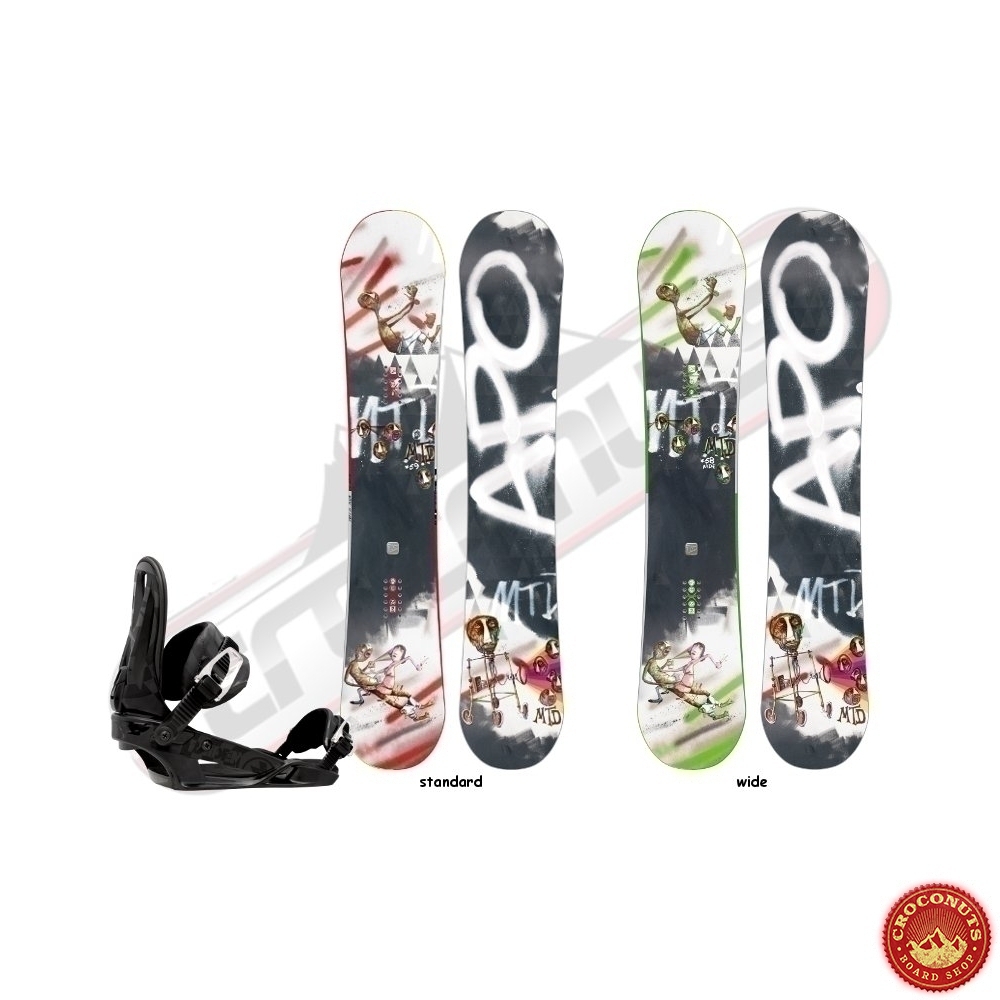 Croconuts Snowboard Offre Pack Shop | Profitez de la promotion de 35% sur Pack Board Apo Mtd + Fixes Raiden Wizard Black ! Exclusivement chez Croconuts. Boutique en ligne de Snowboard Apo. Choisissez parmi les plus grandes marques de Snowboard pas cher. Avec Croconuts, profitez des promo sur tous les équipements Snowboard Apo.
